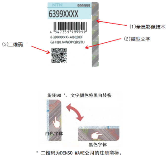 作為防止假貨流通的舉措,NTN于2014年在汽車售后產(chǎn)品導(dǎo)入了防偽標(biāo)貼(以下簡(jiǎn)稱舊防偽標(biāo)貼),并從2017年3月起,在所有日本產(chǎn)的產(chǎn)品(包括汽車售后產(chǎn)品及工業(yè)機(jī)械用產(chǎn)品)上導(dǎo)入了全新的全息影像技術(shù)防偽標(biāo)貼(以下簡(jiǎn)稱“新防偽標(biāo)貼”)。請(qǐng)用戶根據(jù)以下產(chǎn)品的分類及不同的防偽標(biāo)貼進(jìn)行產(chǎn)品身份查詢。查詢結(jié)果僅供參考,如仍然認(rèn)為產(chǎn)品存在假貨嫌疑的,請(qǐng)聯(lián)系恩梯恩(中國(guó))投資有限公司法務(wù)合規(guī)部。